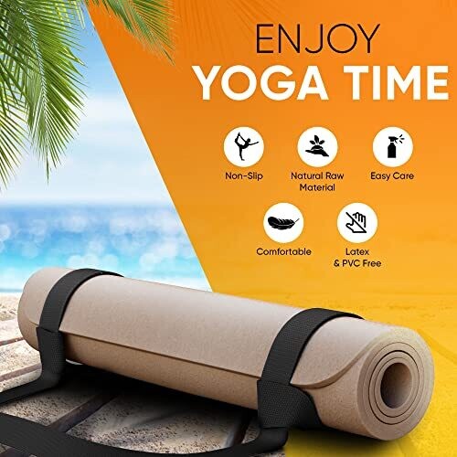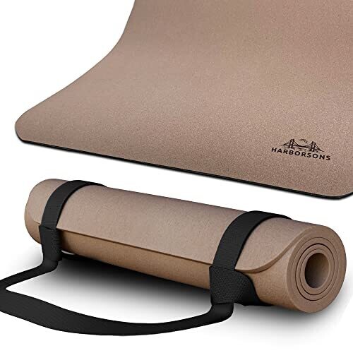 Luxury Cork Yoga Mat- Hot Yoga Mat 5mm with Carrying Strap- Bikram yoga mat, Best Yoga Mats for Fitness & Pilates- Eco Friendly Yoga Mat Cork- Cork Floor Mat, Hot Yoga Mat Non Slip