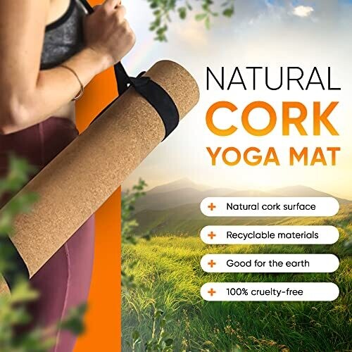 Experience premium, eco-friendly comfort with the CorkLux Luxury Cork Yoga Mat. Designed for Bikram and hot yoga, it features a non-slip surface, 5 mm cushioning, and a carrying strap. Ample 72