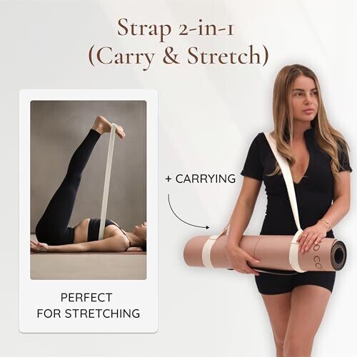 includes a 2-in-1 strap that functions as both a carrying strap and a stretching aid; ergonomic arch shape facilitates quick setup, secure closure, and convenient transport.