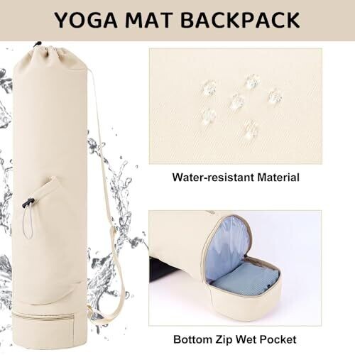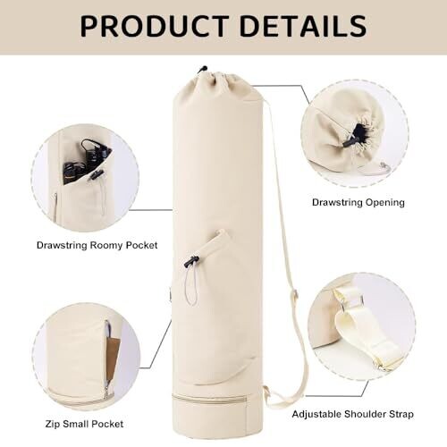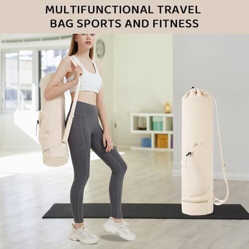 • Beige, gender-neutral design that suits both women and men, offering a stylish solution for transporting mats and gear.