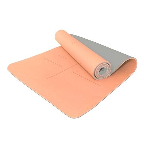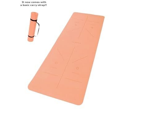 KOBONA Eco Friendly TPE Yoga Mat with Strap in Peach Nectar offers premium, non-slip cushioning, extra width, and dual-layer grip for stable practice. 1830 x 660 mm, 8 mm thick, with alignment lines for easier, safer sessions.