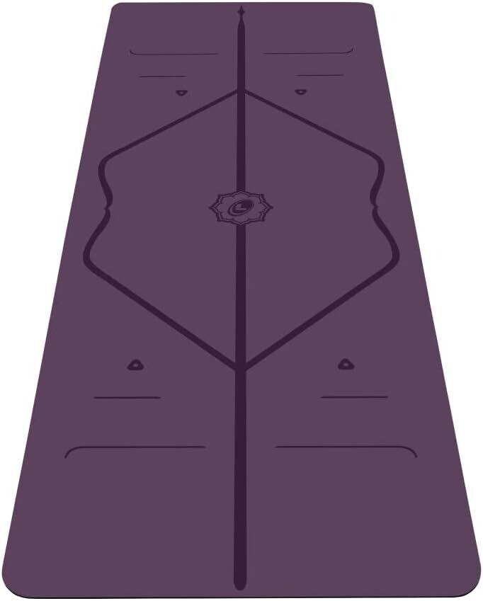 Liforme Yoga Pad offers a patented alignment system for precise poses, with a warrior-like, non-slip grip. Made eco-friendly and biodegradable, this 4.2mm thick pad provides knee, elbow, and hand support during yoga practice.