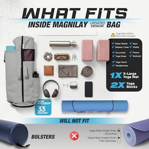 • Magnilay Yoga Mat Bag Carrier for Women and Men — Fits Mats, Blocks