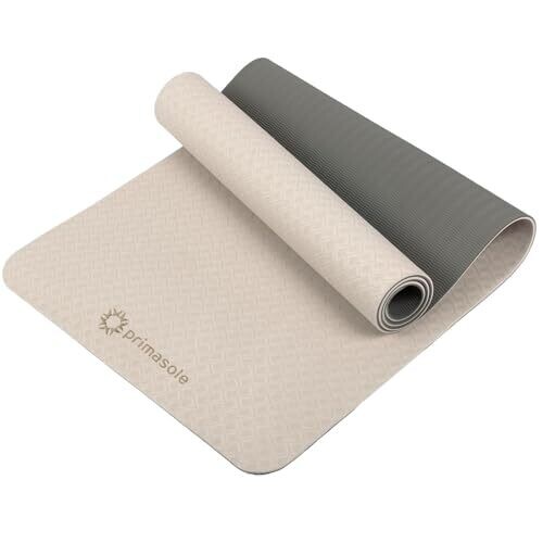 Primasole Yoga Mat in Eccle Beige offers comfort and stability with double-sided non-slip surfaces. Made from eco-friendly TPE, it resists sweat for easy cleanup, includes a carrying band, and is ideal for yoga, pilates, cardio, and core workouts.