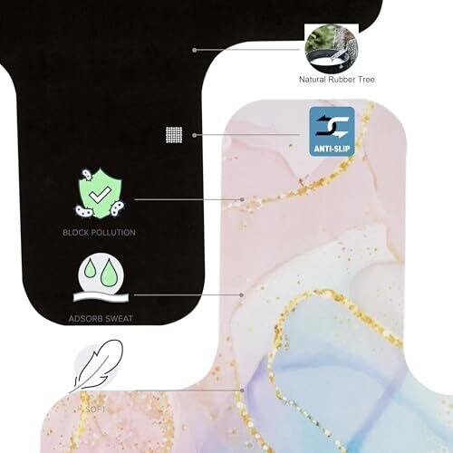 microfiber suede top layer with silicone backing for slip resistance and sweat absorption.
