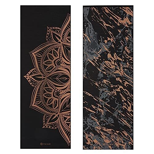 • Gaiam Yoga Mat Premium Print Reversible 6mm Non-Slip Pilates Mat – Bronze Medallion