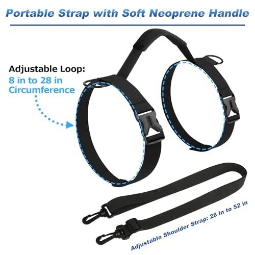 • Two carrying methods: a soft neoprene handle for easy hand carrying and an adjustable strap that can be worn over the shoulder as a shoulder bag.