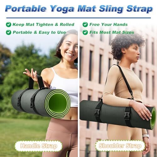 • Adjustable length with two buckles accommodates yoga mats and blankets of different sizes, ensuring a secure fit every time.