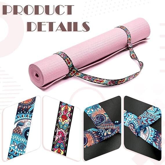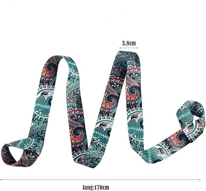 The product is a 2-piece yoga mat strap sling designed for carrying mats and assisting stretching exercises. It is constructed from a premium polyester cotton blend to enhance durability, colorfastness, and comfort against the skin compared with standard cotton. Each strap measures approximately 170 cm in length and 3.8 cm in width, suitable for most standard yoga mats. The straps feature adjustable loops at both ends to secure a range of mat sizes and to customize the length for a snug fit when carried by hand or over the shoulder. In addition to serving as a carrier, the set functions as a stretching aid to support and deepen yoga poses and flexibility training.