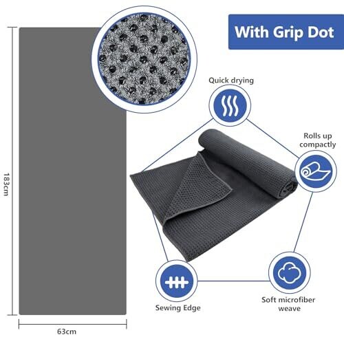 • Vnoss Microfiber Yoga Towel with Non-Slip Dots for Secure Mat Grip
