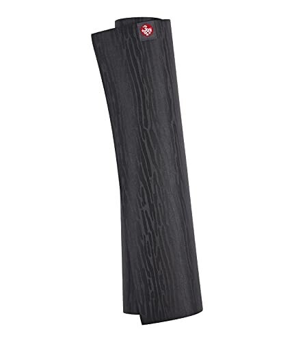 Manduka's 4mm eKO Lite yoga mat in Charcoal offers a soft, textured surface for grip. Made from 100% natural tree rubber, it's lightweight, durable, and easy to clean, with a 71