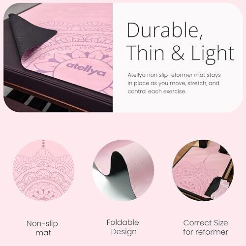 • Atellya Pilates Reformer Mat With Grip Socks Women & Mesh Bag Bundle offers a lightweight, portable solution for cleaner, more focused workouts on reformers or in yoga sessions.