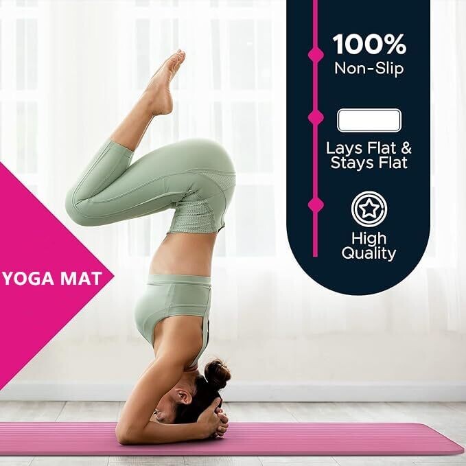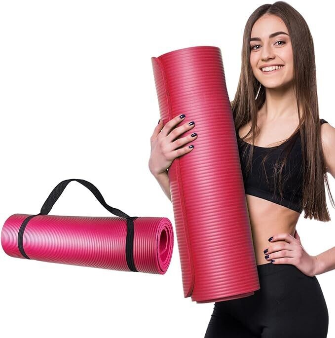 An eco-friendly NBR yoga mat with extra-thick cushioning for comfortable workouts. Features a large non-slip surface for yoga, Pilates, and gym use. Lightweight and portable with a carrying strap, suitable for men, women, and kids, built for lasting durability.