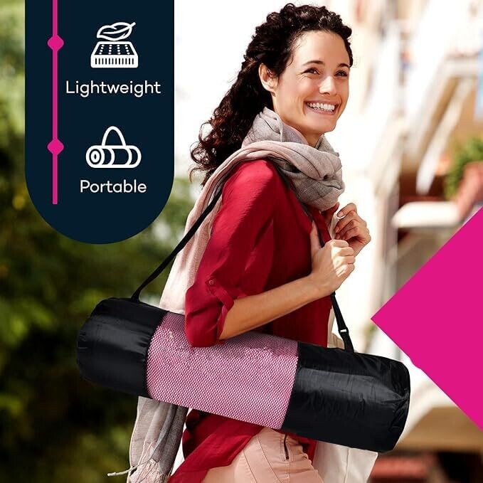 Poriya Yoga Mat Pad with Carrying Strap – 15mm High-Density, Non-Slip, Pink
