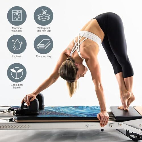 • Elevate your Pilates routine with a mat that delivers comfort, cleanliness, and convenience, designed to complement your reformer workouts.