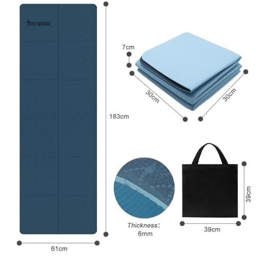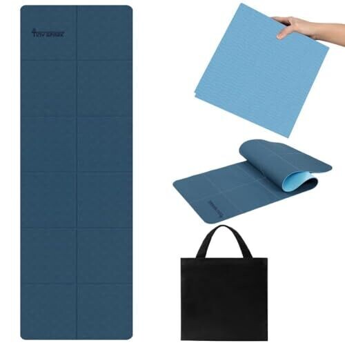 - Meet the Foldable Yoga Mat, designed for effortless portability and quick set-up, featuring a foldable design and a convenient black storage bag for on-the-go workouts.