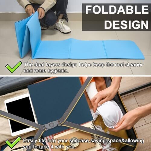 - Lightweight and easy to store, the mat folds compactly to fit into bags or backpacks, making it ideal for home, studio, or travel use.