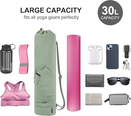 Elevate workouts with a versatile yoga mat bag built for gym and outdoor use. It includes a bottom wet pocket and secure exterior pockets for mats, damp items, water, phone, and essentials, plus a lightweight, comfortable strap.