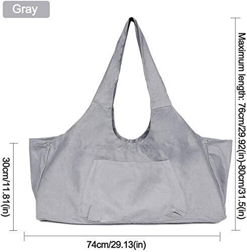 29 x 9 x 12 inches. Fits most sizes yoga mat. Double wide shoulder strap prevents from tiring your arms and shoulders.