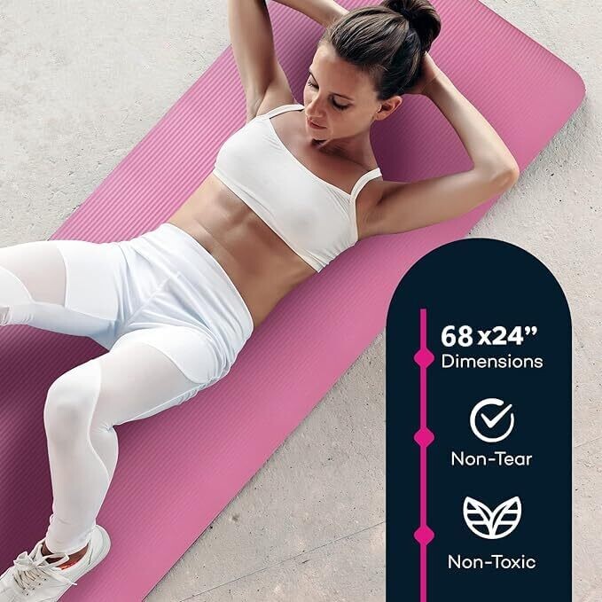 An eco-friendly NBR yoga mat with extra-thick cushioning for comfortable workouts. Features a large non-slip surface for yoga, Pilates, and gym use. Lightweight and portable with a carrying strap, suitable for men, women, and kids, built for lasting durability.