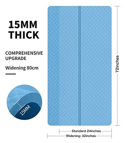 The nuveti exercise mat is available in thickness options of 15 mm, 20 mm, and 30 mm. Oversized dimensions are 72 inches by 32 inches or 78 inches by 36 inches. Material described as high-density foaming technology, tear resistant, wear resistant, and quick rebound. The mat is PVC-free, non-toxic, and eco-friendly, with a skin-friendly surface. The surface is textured to provide enhanced traction for stability during various movements. Care instructions include spot cleaning with cold water and mild detergent, and drying flat. The product includes a free carrying bag. Dimensions and thickness are intended to support joints, ankles, and knees on hard floors, and to absorb vibration and reduce noise during use. Suitable activities include yoga, Pilates, Bikram, fitness exercises, and general floor training. Returns are accepted within 30 days for full money refund with satisfaction after-sale service.