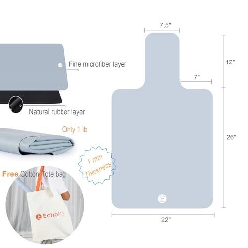Echome Whispering Tide Ocean Serene Blue Pilates Reformer Mat – Non-Slip, Quiet Grip Surface