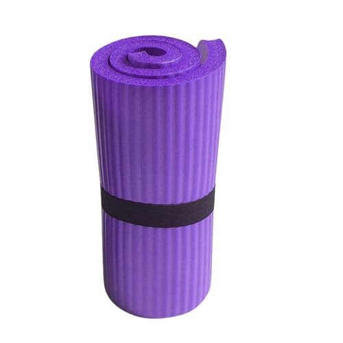 Elegant purple 15mm yoga mat with durable NBR cushioning for knee, back, and ankle support. It features a non-slip surface, excellent shock absorption, and a portable roll-up design, ideal for home, gym, or studio workouts.